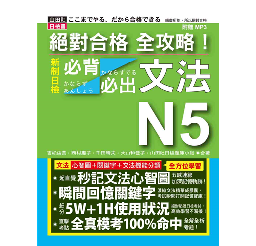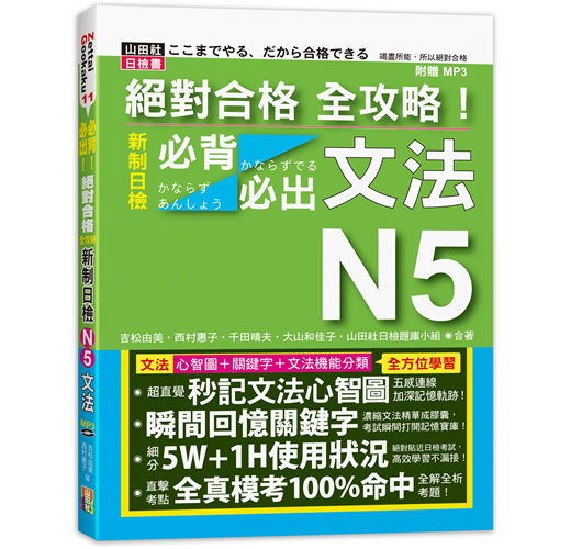 《絕對合格 全攻略!新制日檢N5必背必出文法》百分百全面日檢學習對策,讓您制勝考場: