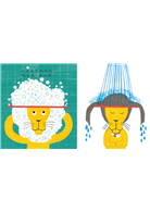 對家長而言,即使孩子們再怎麼喜歡洗澡或游泳,幫他們洗頭仍是一件不容易的事。無論洗頭時是多麼小心翼翼,緊閉雙眼的孩子依然害怕肥皂水會流進眼睛裡,而蓮蓬頭流瀉的水聲更是讓他們緊張不已。本書透過孩子們喜歡的動物一個個出現並開心洗頭的模樣,讓孩子逐漸對「洗頭」的過程感到親切:首先,將頭髮沾溼,再將洗髮精倒入手中,稍微搓揉後,抹在頭髮上,再以手指反覆搓揉──瞧,看見雲朵般的白色泡泡了嗎?接著,扭轉水龍頭讓水流傾瀉而下,再用毛巾將溼答答的頭髮擦乾……