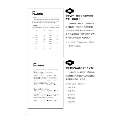 收錄該題型歷屆考古題之中文翻譯及題目解析,該如何掌握考題重點、如何避免題目陷阱、如何迅速抓到解題關鍵,都能從詳盡的考古題解析中找到訣竅。