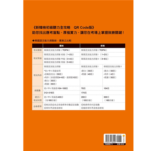 不知如何準備新韓檢初級「聽力」科目嗎?有了韓語名師裴英姬老師所著的《新韓檢初級聽力全攻略 QR Code版》,保證勝券在握!