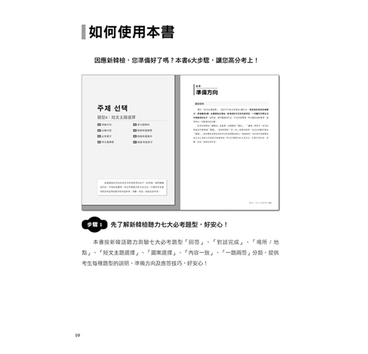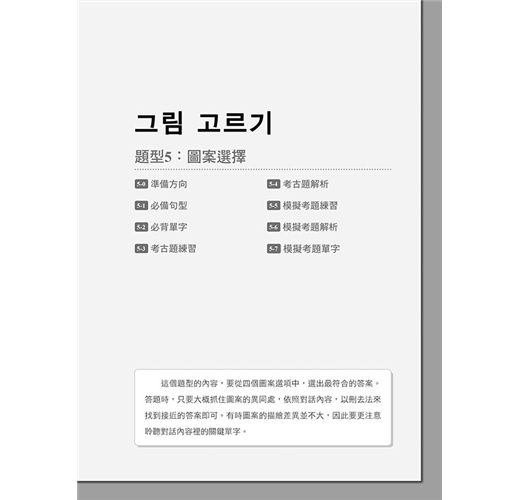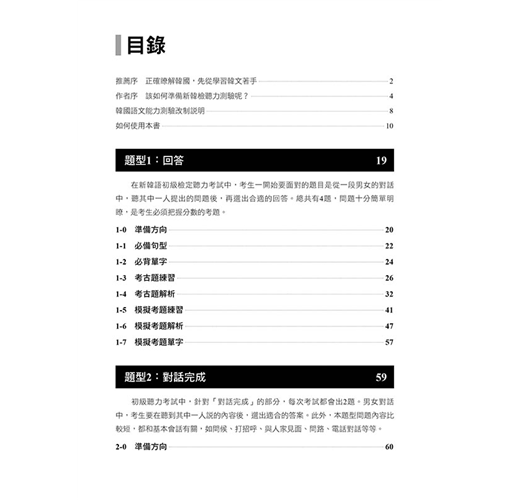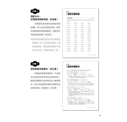 本書將每一題型之必考句型和單字分門別類,提供考生明確的準備內容,只要按部就班學習和複習,就能紮實打好韓語聽力基礎!