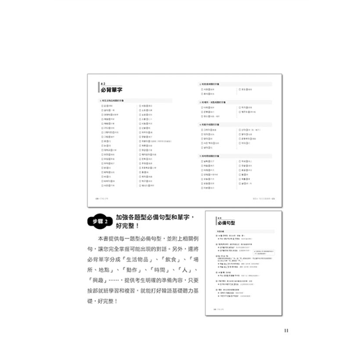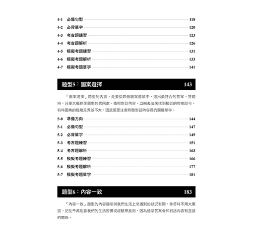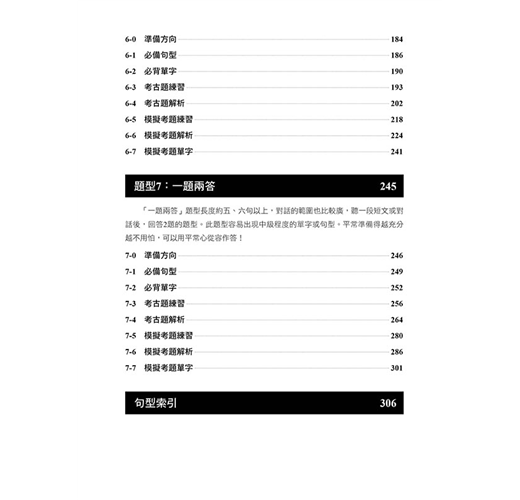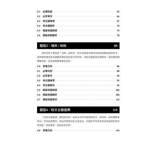 統整出應試該題型應準備並熟記之文法句型,並附上相關例句,一網打盡考題中可能出現的對話及文章,準備考試事半功倍。