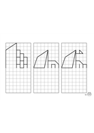 先在中心軸的一側提示圖案,讓孩子們畫出另一側的圖;