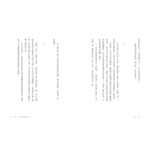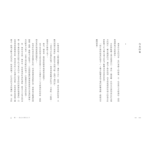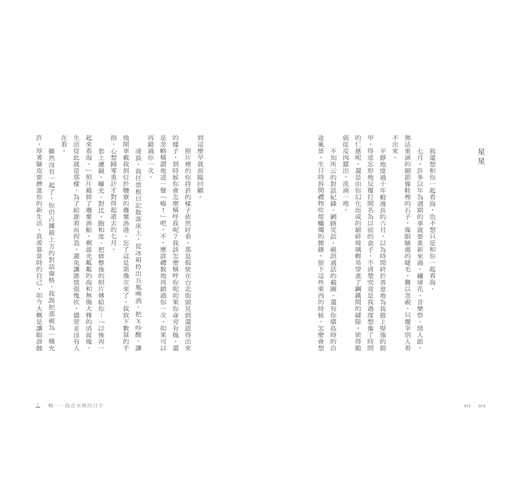 全書分成四輯,跳躍在散文、詩、故事的分界之間,