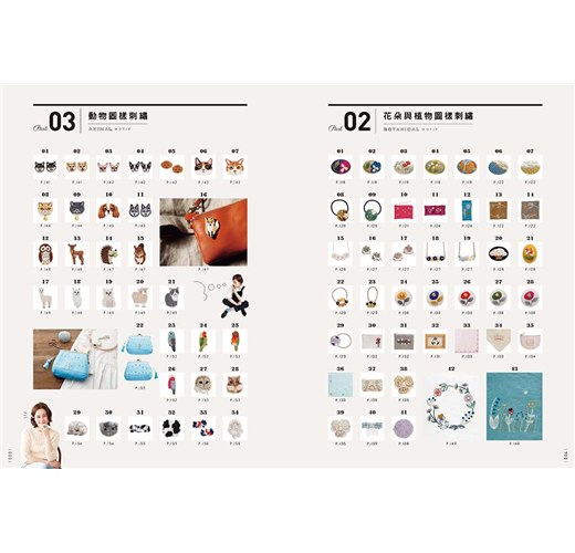 四大類型圖樣刺繡,宛如商品型錄一般的實品照目錄,想學做什麼就做什麼,翻找起來省實不費力!
