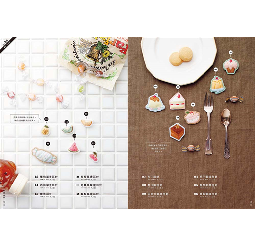 ‧日常生活圖樣:草莓、柳橙切面、奇異果切面、杯子蛋糕、草莓蛋糕、布丁、鳳梨、西瓜、糖果、粉紅洋裝、蝴蝶結、寶石、香檳&香檳杯、口紅、高跟鞋、泰迪熊、紋章、愛心、兔子、花朵英文字母……收錄多種美味食物與日常生活圖樣,有趣又不失品味的俏皮風格小物。