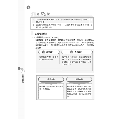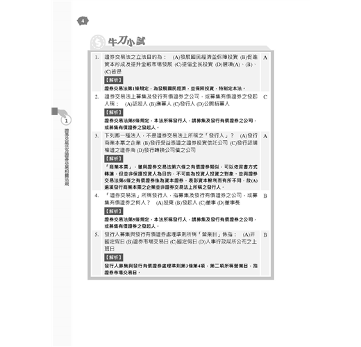 在適當的段落處皆有與內容相應之「牛刀小試」;而各章節最末則附有「精選試題」,讓考生在研讀完內容後進行模擬測驗,一方面熟悉題型與出題方向,提高掌握考試重點的機率,另一方面,則找出自己未讀通透之處,即刻補強,隨時保持最佳戰力。