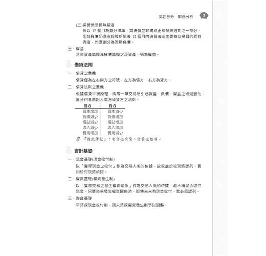 Tip:特別針對諸多容易混淆的概念,例如,應計基礎換算為現金基礎等,透過表格圖示來歸納匯整換算原則,並以圖解來說明計算過程背後的原理,不再單單只有「不知其所以然」的計算公式,幫助考生建立全方位完整的觀念。