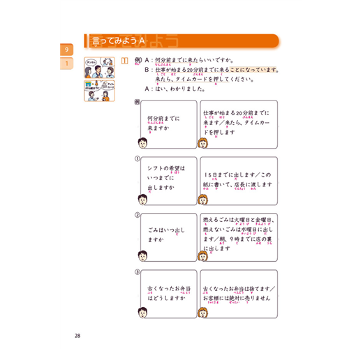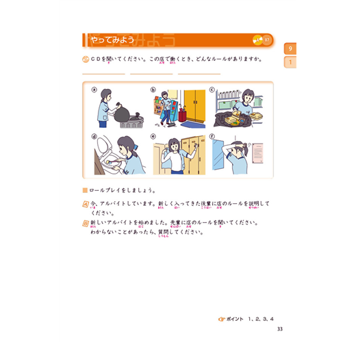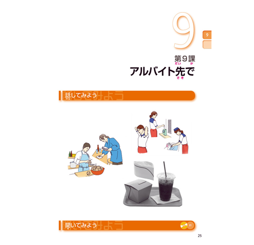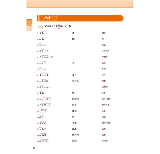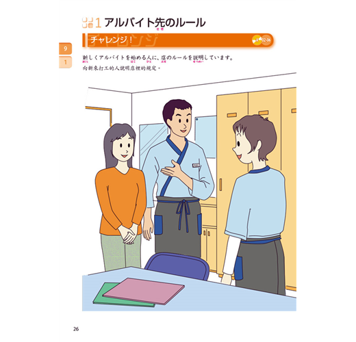 有別於直接進入文法句型或文章的教科書,是以「狀況插圖」提示會話進行的狀況,嘗試用已知的日語表達。讓學習者思考符合狀況當下的會話流程,提升日語的運用能力!
