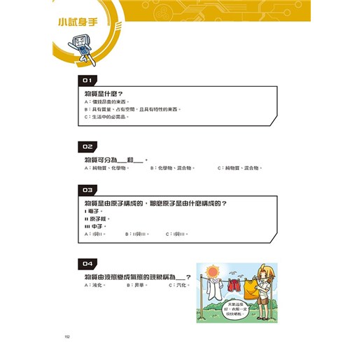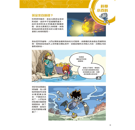 STEP 2知識專區∣科學性★★★★★設有「科學小百科」單元,藉由X星際探險隊隊員的生動對話和淺顯易懂的文字,來介紹物質的構成與分類、物質狀態與轉換、物理性質與化學性質、生物性與化學性有害物質、黃金與黃鐵礦、鍊金術與煉丹術等超炫知識,讓小朋友有系統的學習。