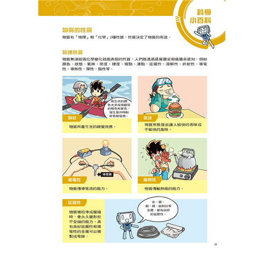 只要學習3步驟,趣味漫畫+驚險故事=開啟知識之門,培養小小科學家!STEP 1情境學習∣教育性★★★★★圖像式漫畫結合生動可愛的人物和驚險刺激的故事編排,加深小朋友對於科學知識的理解和如何運用在生活中,激發他們對自然與科學的好奇心。而書中團隊合作的故事,則可培養小讀者們建立勇於挑戰與冒險的精神,藉此養成體貼他人的個性。