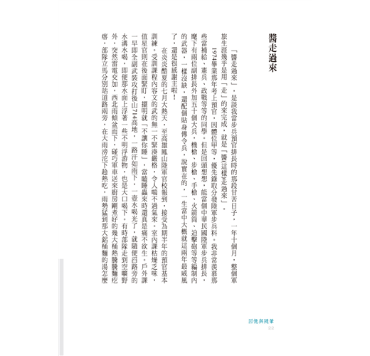 「醬走過來」,是談我當步兵預官排長時的那段甘苦日子,一年十個月,整個軍旅生涯幾乎是用﹁走﹂的來完成,就是「醬(這樣)走過來」。