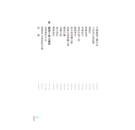 ▌書的最後輯錄作者長年下來紀錄的珍貴風景與心得,邀請您一同體驗每一幀相片帶來的悸動。