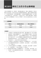 本書特別針對容易混淆之觀念,獨立撰寫一個章節,透過綜合比較之方式,快速釐清觀念,在最短時間內,全盤了解郵政法規的重要考點。