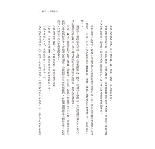 值得一提的是,寫作的過程中,對母親永不止息的思念,再度從我的記憶金庫裡泉湧而出。讓我得以穿梭於記憶甬道之間,將我們母子倆那珍貴相處的歲月憶往,藉由小說文體為畫筆,描繪出更立體與更層次感的情節與場景。