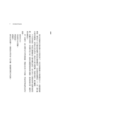 我是個務實又理性的人。我尋求務實、理性的解釋。早餐吃了什麼?土司?這個無害的食物難以解釋突如其來的不適。如果不是反胃,那又是什麼?主要成分是難以捉摸的不悅,以及……是的,恐懼。像是知道有什麼壞事即將發生。甚至是……想讓它發生的衝動。