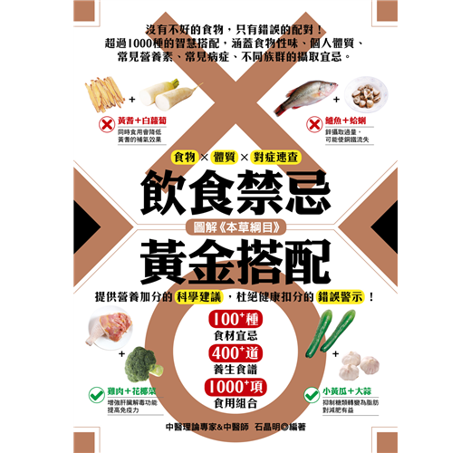 本書以《本草綱目》為指引,綜合作者的行醫經驗,以及養生學、醫學和營養學的理論,歸納整理出一套有系統的全飲食宜忌守則,讓讀者不論是從體質、食材、疾病等方面來入手,都能找出相對應的正確飲食搭配。