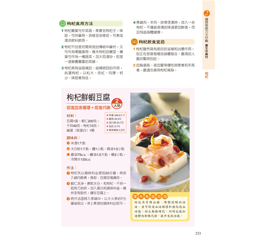 ●枸杞鮮蝦豆腐 ●當歸枸杞雞 ●參耆益氣茶