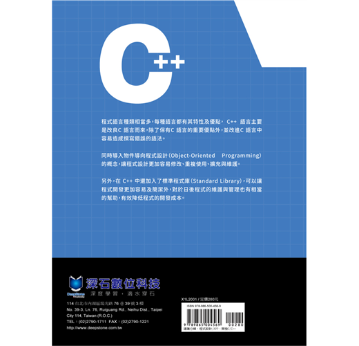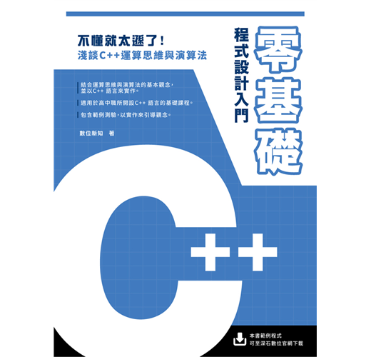 全書以入門者的角度去介紹,除了學習以C++ 語言撰寫程式外,更能加強運算思維及演算邏輯訓練;學生或是初學者都可以使用本書作為進入C++ 語言程式設計的殿堂。