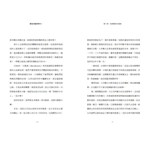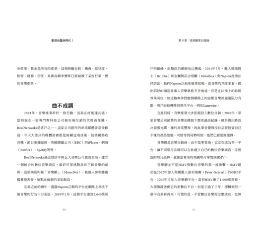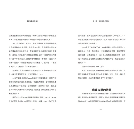 變革比從前來得迅猛,「破壞力」更驚人。iTunes數位音樂崛起幾乎瓦解實體唱片,HMV等傳統通路風光不再。當你改用iPhone,會料到Nokia等傳統型手機就此消失嗎?當你按下數位相機的快門,有看到底片機走入歷史嗎?當你宅在家中,選擇用Netflix追劇,有想過百視達會因此倒店關門嗎?或者,你有沒有想過未來恐怕會失業?因為現在的工作很有可能被機器取代。