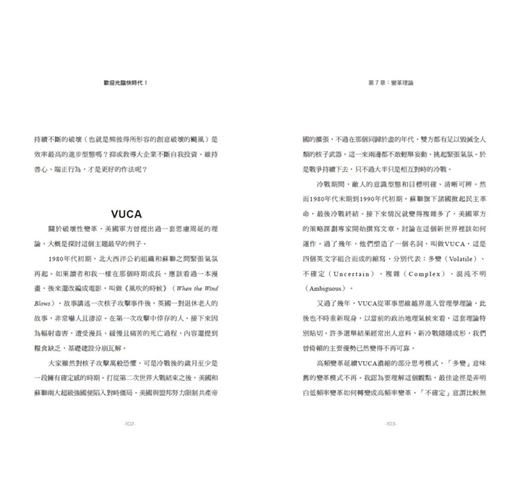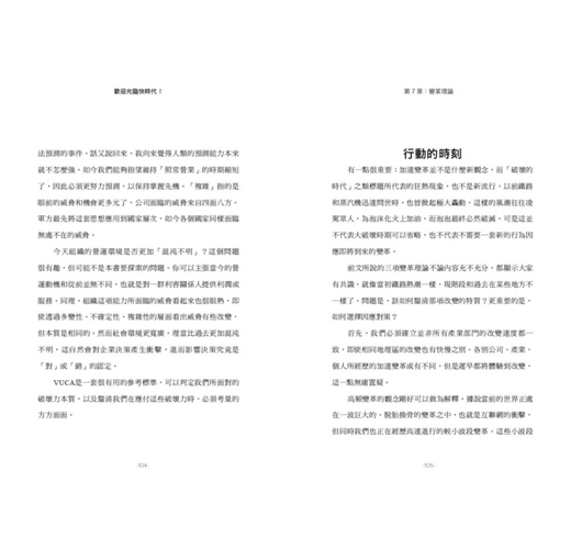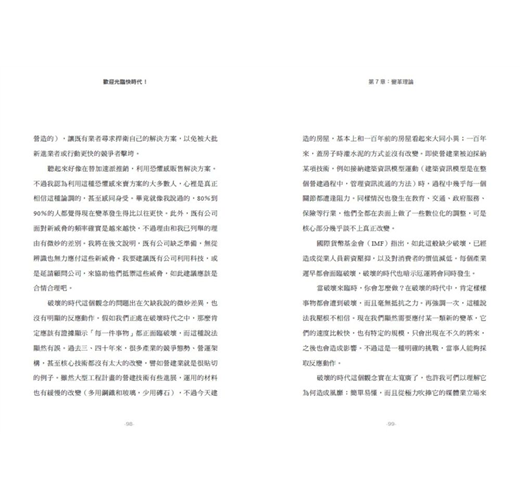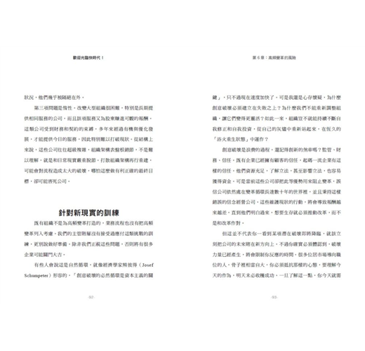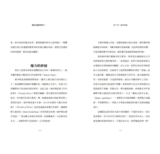 我們目前所經歷的並非大幅度變革,而是許許多多頻率較高、幅度較小的改變。它們可能不會改變世界,但絕對有可能改變我們的公司、職業、產業、公私部門。在如今網路超連結的全球化世界裡,具有破壞力的小變革在世界各地到處流動的速度比以往更快。