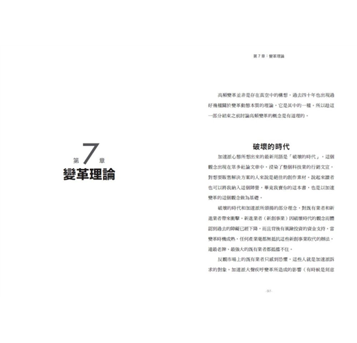 變革的本質發生改變,為什麼事關重大?因為我認為,除非適應這個新現實,否則我們和組織都將敗落。應付這類變革並不容易,它們可能造成很大的破壞,害得有些人苦苦掙扎,很多機構被淘汰。可是大家至少有過應付這類變革的經驗,知道它終將會降臨,所以有緩衝時間去思考如何因應,即使實踐起來或許不如人意也無妨。