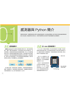 本產品用 24 個範例帶您製作出客製化的智慧居家應用, 使用當前最夯的 Python 程式語言, 內容設計讓新手都能輕易上手, 用多個實用的感測器如超音波測距、震動感測器與 OLED 顯示器, 實作出智慧小夜燈、雲端防盜警報器、簡易股票機等各種智慧生活的周邊小物, 也可以將各種感測器取得的數據資料上傳到 Google 雲端、傳送到手機, 與他人共享資料, 或搭配 Line 的即時通訊功能達到實時遠端監控, 打造出與時俱進的智慧居家。