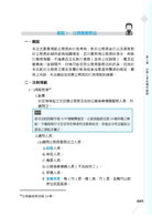 本書各章節開頭字字珠璣地詳列學習重點,先提供讀者引路明燈,心中先有大致框架,再利用內文檢附的說明欄剖析法規爭點,完整擊破學習盲點。以圖表輔助學習,釐清相似或易混淆概念,並結合實務見解,讓讀者研讀法規之餘,跟上實務脈動。每章附有牛刀小試精選試題,可透過單元練習檢驗自我學習成效。