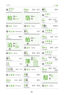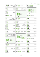 開頭先將日語音讀、訓讀作簡單扼要的說明,使讀者的觀念清晰,之後針對每個漢字清楚地分別列出音讀和訓讀的唸法,並列舉出常用的詞語,使讀者在學習上對音讀、訓讀有舉一反三之效。