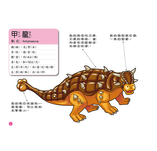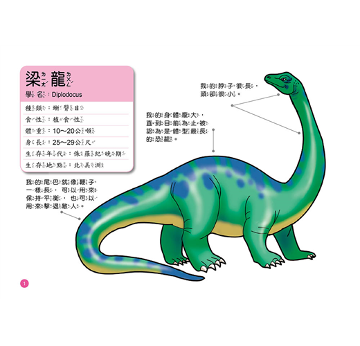 1. 介紹恐龍生存年代、食性、體重、體長等資料,揭開恐龍神秘面紗。2. 本書以重點提示的拉線方式,介紹恐龍的身體特徵與特性,讓兒童更清楚明瞭恐龍生態。3. 生動的插圖繪製,重現恐龍真實面貌。4. 附恐龍線條圖提供兒童著色,除了能認識恐龍,更能畫恐龍,增添閱讀樂趣。