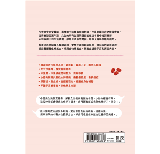 本書從中西醫角度,介紹養五臟調氣血的方法,最適合女性特殊時期、婦科病、經絡養顏養生、平時膳食、調養子宮乳房等調養氣血。