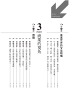 3.每節商業專有名詞,皆有由深入淺的引導,提供使用本書的人自行操作深入延伸式的思考過程與紀錄。
