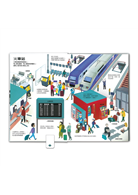在立體場景中邊玩邊觀察,發現火車的秘密!人來人往的車站大廳裡,有售票口和候車室,還立了一個大大的火車時刻表,上面寫著開車時間和目的地。你想好今天要去哪裡了嗎?