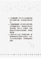 最後是關於其他考用書著作中其他來信的考生,這部分讓我思考著將「影子跟讀法的學習」更細節地列入這本書籍的「使用說明頁面」,讓讀者能更清楚學習方式。一方面是有些考生想要學好聽力,但是卻不知道從何下手。另一方面,許多考生確實卡在某個分數段,寫了許多試題卻沒有在下次應考時反應在考試分數上(這部分在上本的聽力書有提過),我認為紮實地藉由影子跟讀法提升聽力專注力是解決之道,且這部分連帶影響到聽力理解力的提升,所以如果你寫了很多試題卻仍卡關了,建議好好練習一下「聽力耳」相信學習成效會很顯著的,在考取金色證書後,猛然驚覺自己在觀看歐美影集不需要字幕,真的是一舉兩得。最後祝考生獲取心中的理想成績。