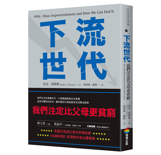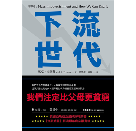 這波災難性的走向,讓年輕世代身陷貧苦泥沼無法脫身 如果你是99%貧窮人的一份子(而且您有99%的機率是如此),那麼你將是史上第一個比父母更窮的世代,儘管經濟持續向上發展;而且,你可能會變得更窮。如果社會照這樣的模式繼續往下走,今日大家所享有的文明將無法持續到2050年。