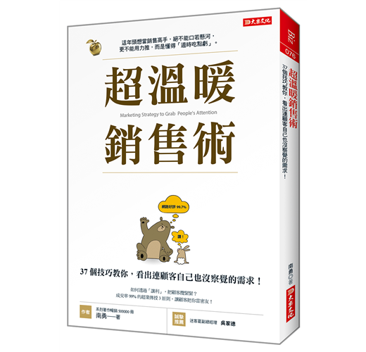 系列著作暢銷50萬冊的銷售專家南勇,借鏡日本享譽全球的溫暖銷售術,提出37個超溫暖銷售技巧。以下,讓我們一窺「南勇流」的銷售術演譯法。