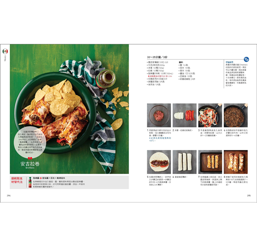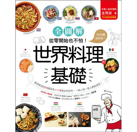 「世界料理」乍聽之下好像很龐雜、困難,為了拉近與讀者間的距離,書中主要會介紹大家最常吃到、看到的異國美食。對於菜單的安排,我積極蒐集讀者們意見,透過網路邀請100位被譽為「美食旅遊饕客」的讀者進行問卷調查,讓他們親自評選本書的各國菜單,最真實地反映出讀者想學的料理。