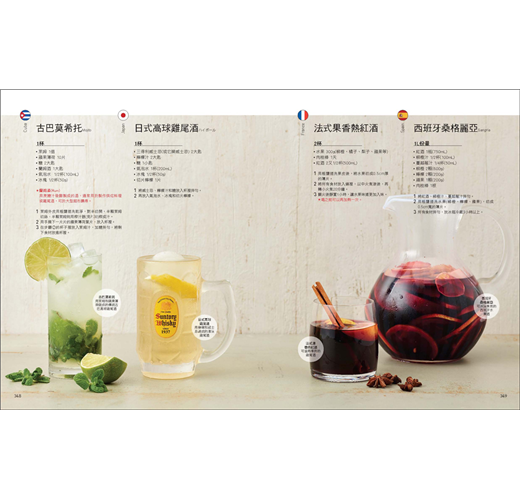 泰式西瓜汁/越式果昔/菲國芒果汁/古巴莫希托/日式高球雞尾酒/法式果香熱紅酒/西班牙桑格麗亞/越南咖啡/英式鮮奶茶/印度拉西