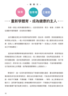 專文推薦 黃啟煌 國立體育大學 前副校長/教務長 鄭雲龍 脊椎保健達人 ------ 運動改造大腦,讓你快樂老化 國立體育大學 前副校長/教務長 黃啟煌 『體育課』在多數人的記憶中,就是學生時代的必修課,相信現在人回想當時的運動情景,還會會心一笑呢!隨著步入社會工作與年齡增長,『體育課』這件事似乎離大家越來越遠。隨著醫學進步,人類的壽命比過去延長了許多,而因為年長伴隨而來生理機能的退化,例如上下樓梯感到吃力,記憶力開始衰退等,也讓年長者的生活品質受到關注。近幾年運動科學與老人醫學相關的研究發展,例如:「運動有益健康」、「運動改造大腦」、「快樂老化」、「在地健康老化」都成了熱門的話題,好處是資訊量非常的巨大,但對於ㄧ般民眾來說,反而陷入了不知道該如何分辨合適運動的困境中。 在我執教多年與近距離觀察市場上的發展,教人運動的資訊實在是多到無法辨識好壞。我始終認為要養成任何一種行為改變的習慣,從認知層面上接受,是一切行為改變的開始,也就是俗稱的「動力」,但這個動力開從何而來?假設要求高年級的朋友們去聽或去讀一大堆理論,實在是強人所難。大家都知道單單是從營養的面向、運動的領域、社會的各種議論就有許多促進健康的方法,要讀都讀不完。其中又有些並非單純運動的問題,例如:有些年長者會有漏尿的問題,有人有肩頸痠痛的問題,有人有下背痛骨質疏鬆的問題等等,這麼多的問題又該怎麼辦呢?哎呀!有人會告訴您: 練練骨盆底肌、多補充鈣、矯正站姿坐姿、放鬆筋膜、打打太極,一時之間大家都成了專家,那到底該怎麼做才對?或者直接上網看個影片跟著運動? 現在,大家有福了! «高年級體育課» 這本書,是由我的好朋友冠廷,加上一群既專業又有熱誠的夥伴們,整合了大家的智慧與各自的專業經驗,所呈現出可以輕鬆讀,又可跟著做的一本體育課參考書。更重要的是,在您決定選修這門體育課之前,它還會先引導您透過PAR-Q的評估、姿態評估與運動評估等方式,揪出您身體不適或某處有卡卡的地方。如果在自我評估的過程中,您發現自己有狀況,就可以先去找相關專業的醫療人士做進一步諮詢,讓您的「體育課」上的更安全又健康! 黃啟煌 重新學體育,成為健康的主人 鄭雲龍 脊椎力學專家 身體智慧有限公司執行長 YouTube頻道超過2200萬點閱次數 我是一個從小就有運動習慣的人,從田徑到武術、氣功、瑜珈、太極拳,我從運動中獲得健康、自信與良好體態。 由於運動在我生命中是理所當然的事情,因此有一段時間,我曾經嚴厲且沒有同理心的認為;一個人有沒有運動習慣,部份反應出一個人面對自我生命的態度,因為人人都知道運動好處多多,為什麼還不動?一定是此人太怠惰,或是對自己不夠負責任! 直到後來我開辦脊椎強背術研習班,學員中有許多高年級同學,我發現這些同學都是對自己很自律,很獨立自主,受人尊敬的長輩,但他們卻因為環境、不好的運動經驗、症狀或病痛等因素,沒有辦法養成運動習慣或做對運動,我才檢討起自己;原來有太多人知道要動,但就是不知該如何動起,可能有動機問題,也可能有技術上的問題,他們都是需要專業人士幫助的人。 舉個例子,當一位高年級同學因為下背痛來到醫生面前,醫生通常會透過影像診斷告訴他目前脊椎現況,醫生站在保護的角度,可能告訴同學限制性的警語,例如不可彎腰、不要搬重、不要蹲、不要爬樓梯……等等,加上影像強大的暗示力,該同學可能會陷入脊椎結構失常的迷思中,不敢動也不知道該如何動,脊椎的僵硬不適可能更日漸惡化,這其實並非醫療的問題,而是這個社會缺乏與醫療相對應的健康促進教育系統,例如針對高年級同學的體育課。 很高興運動傷害防護與運動醫學的專家-林冠廷老師,關注到高年級同學的需求,在過去的著作基礎上,創作了這一本容易閱讀、含金量高的好書-高年級體育課,這是一本可以幫助高年級同學們開始運動、做對運動、創造自我健康與行為改變的運動啟發書,其中有啟發人心的故事、有實際成效的案例,更有對症下藥的運動解方。 大多數人一旦進入熟齡或是銀髮階段,身上難免有些小病小痛,此時除了醫療的協助外,其實透過自主居家運動,可以減少過度依賴被動治療疼痛、緩解症狀的處境,轉而走向主動康復、創造健康的人生。 追求健康雖然不是生活的全部,但如果生活中加入良好運動習慣,追求健康就變成自然而然的事,讓我們一起透過這本書,對自己健康負起責任、成為自己健康的主人!