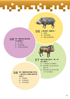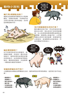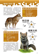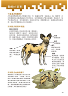 設有「動物小百科」單元,特別介紹犬科動物和豬科動物的構造與小常識,以及大耳狐、苔原狼、日本貉、疣豬、西里伯斯鹿豚、白脣西貒等動物的超炫常識,讓小朋友有系統的學習。