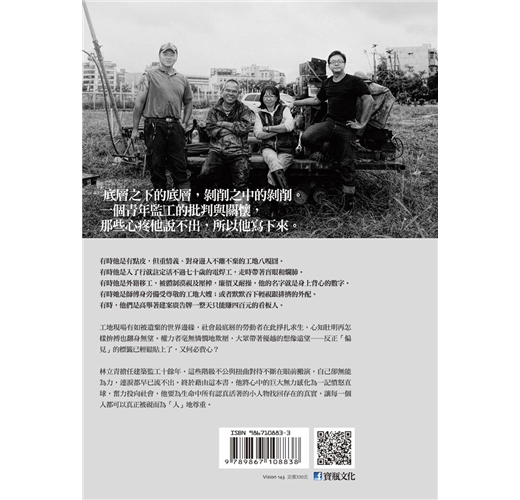 林立青擔任建築監工十餘年,這些階級不公與扭曲對待不斷在眼前搬演,自己卻無能為力,連淚都早已流不出。終於藉由這本書,他將心中的巨大無力感化為一記憤怒直球,奮力投向社會,他要為生命中所有認真活著的小人物找回存在的真實,讓每一個人都可以真正被視而為「人」地尊重。