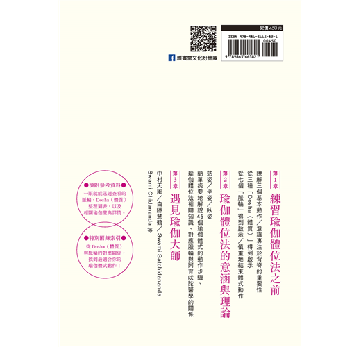 並淺顯易懂地從古瑜伽起源的理論、傳說、象微,進一步瞭解體位法的動作意義。