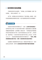 收錄重要學習概念,囊括單字的重音、com-, con- 開頭的單字發音、schwa 央元音、單字量測試。此外,無私分享高中三年所做的單字筆記,有志學好字彙的讀者,務必仔細閱讀,從仿效中再找出適合自己學習模式的單字筆記,下一個單字王就是你!