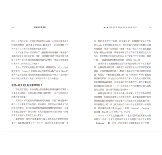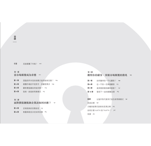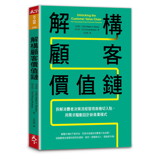 「對於真正以客戶為中心的工作者來說,顛覆並不可怕,他們理解並能有效打中客戶價值鏈上的痛點。顛覆者如果能解決目前龍頭企業的盲點或客戶的痛點,就可以迅速崛起獲得市占率。特謝拉(Thales S. Teixeira)教授的新書不僅指引當前企業數位轉型的方向,也讓目前割據市場的大企業有所警惕。」──錢果豐,香港恒生銀行獨立非執行董事長
