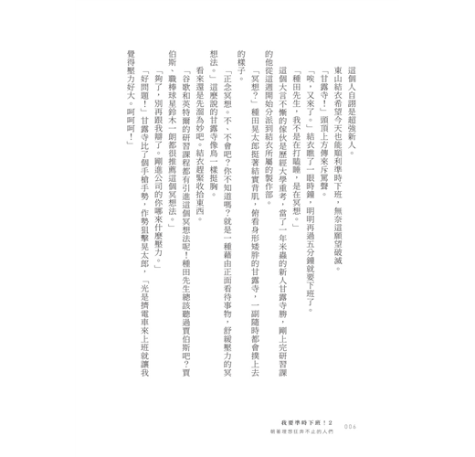 「谷歌和英特爾的研習課程都有引進這個冥想法呢!種田先生總該聽過賈伯斯吧?賈伯斯、職棒球星鈴木一朗都很推薦這個冥想法。」