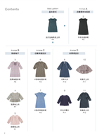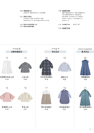 本書的身片紙型只有一種,再根據領圍、剪接、下襬等設計,加入小部位的紙型,