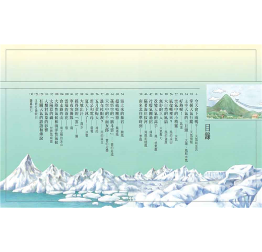 從我們的生活經驗出發,說明太陽、風和水氣如何影響臺灣的天氣,解釋颱風、梅雨、雷電和龍捲風發生的原因。然後擴大認識世界季候區,了解人類活動對氣象造成的改變,進而建立孩子關心地球的環保意識。