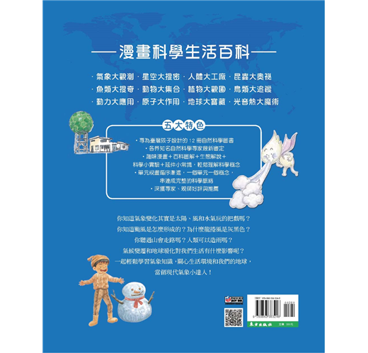 以漫畫和圖解方式,將氣象常識轉化成有趣的情節或解說圖,讓孩子輕鬆獲得完整的科學概念,非常適合作為親師引領孩子進入氣象領域的入門書。