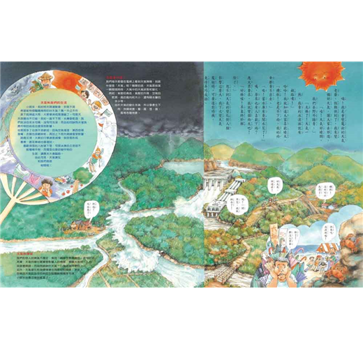 ■特別要強調的是,這套書完全是用圖像來表現的。因為我們相信:知識性、科學性的讀物,用圖畫更能引起孩子閱讀的興趣,也更能達到理解的目的。所以,每一單元都設計有「漫畫」和「跨頁解說圖」兩部分。「漫畫」部分是將該單元概念轉換成二~四頁的趣味情節,讓孩子在看漫畫中不知不覺得到知識;若能因而激發他深入探究的興趣,則可繼續翻開「跨頁解說圖」,藉由精密寫實的彩圖或實驗,循序漸進的引導文字,解答心中的疑惑,獲得更完整、更清晰的科學知識。