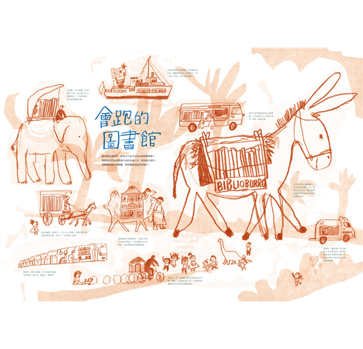 隨書附贈「會跑的圖書館」書衣海報,由林小杯特別繪製世界各地別具特色的行動書車,帶孩子認識這些熱心散播著閱讀種子的「小雷龍」們。